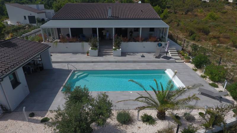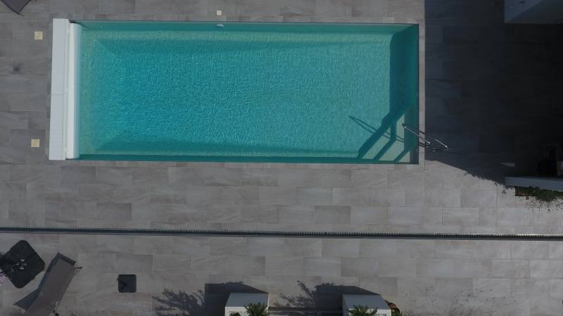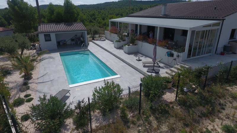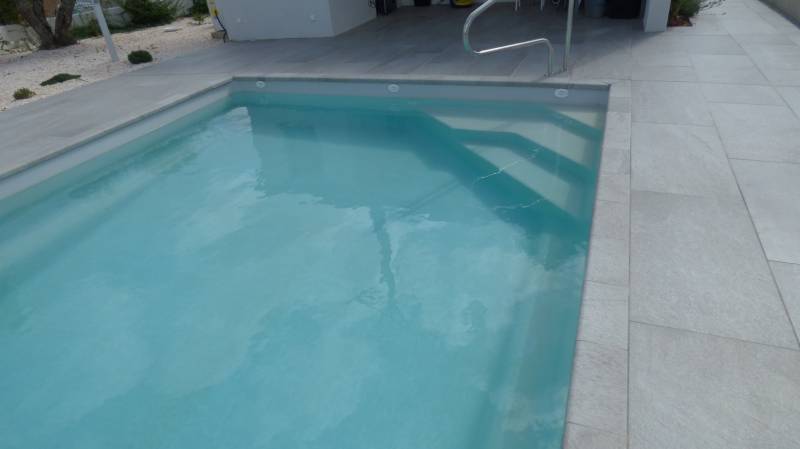 L'accessibilité a été un point central dans cette installation. Afin de permettre à toutes les personnes, y compris celles à mobilité réduite, de profiter pleinement de la piscine, nous avons installé une rampe d'accès en inox. Cette solution est idéale pour garantir une entrée en toute sécurité et sérénité dans l’eau. De plus, la sécurité est renforcée avec un volet immergé de la gamme Aqualife, un équipement de qualité qui assure une protection optimale.