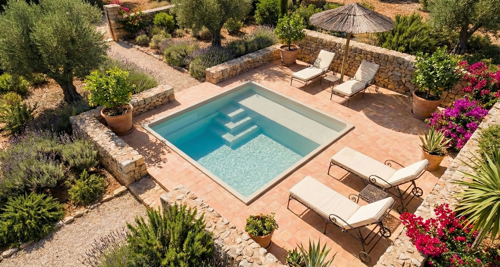 Vous possédez une maison de ville ? Pensez aux petites piscines enterrées qui s’invitent dans les petits espaces. Demandez une étude personnalisée pour une installation de piscine rapide. Nous proposons également à nos clientes toute une gamme de produits pour le traitement de l’eau et l’entretien de votre piscine.